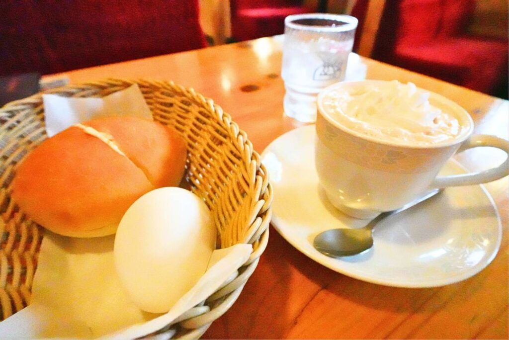 ドリンクをひとつ頼むと、トーストとゆで卵がついてきます。