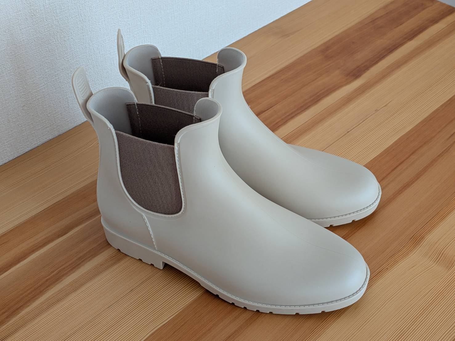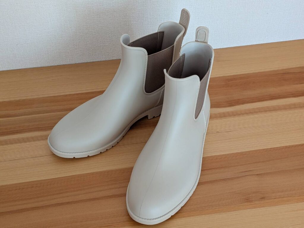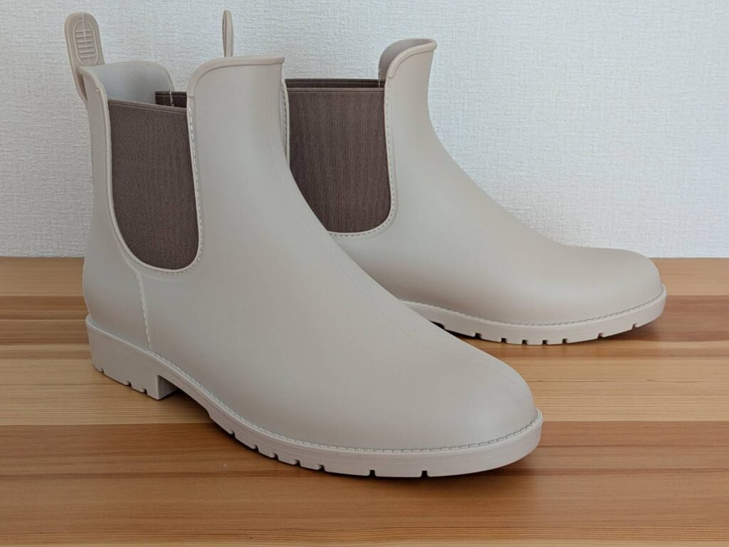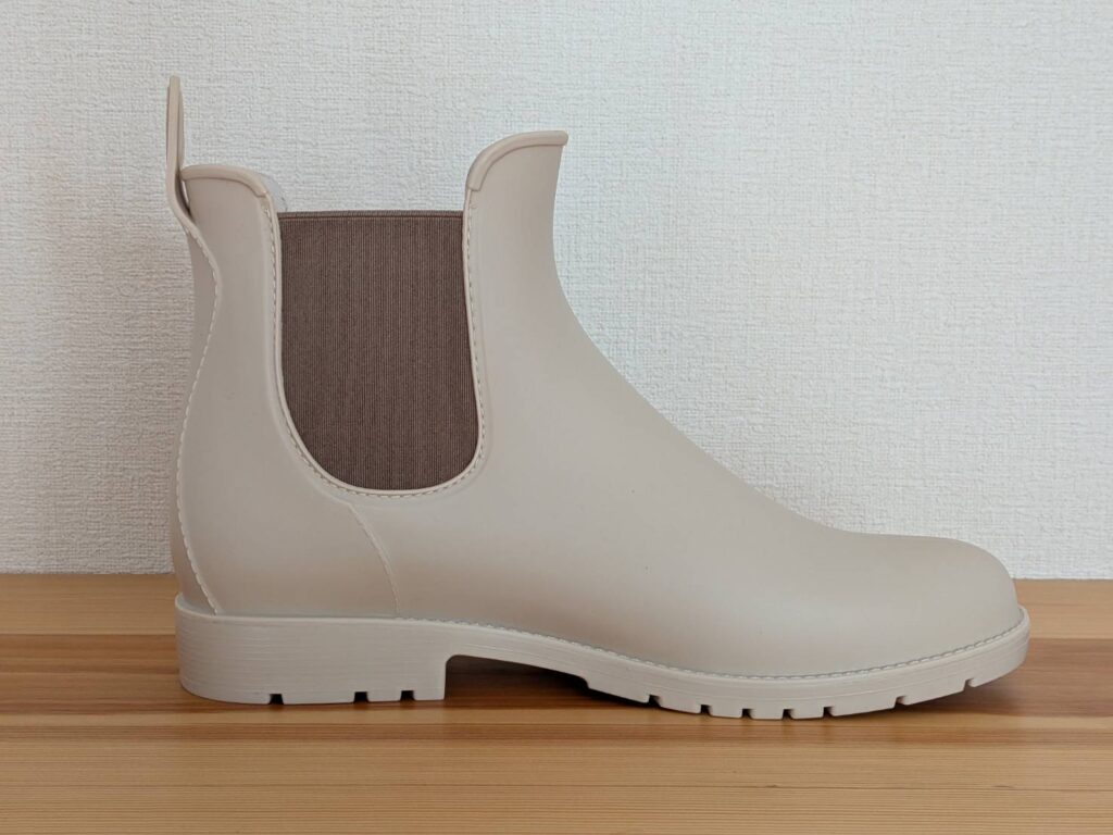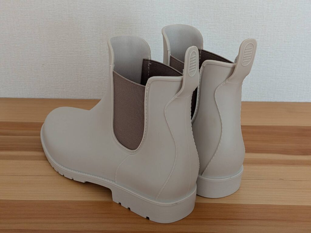 まだ実際の雨の日には使えていないんですが、つなぎ目のない一体型の作りや、しっかりしたソールを見ると、水や滑りへの不安は少なそうだなと感じています。